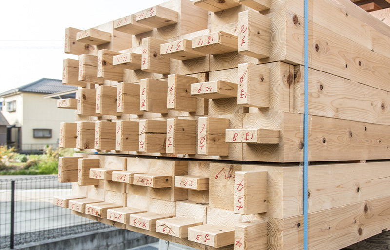 日本の「在来木造軸組工法」は柱や梁の軸組部材を熟練の技術で加工し組上げる工法です。