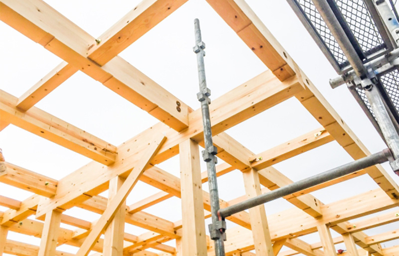 プレカット工法とは、設計図に基づき、構造木材をあらかじめ工場で加工し現場で組み立てる工法です。